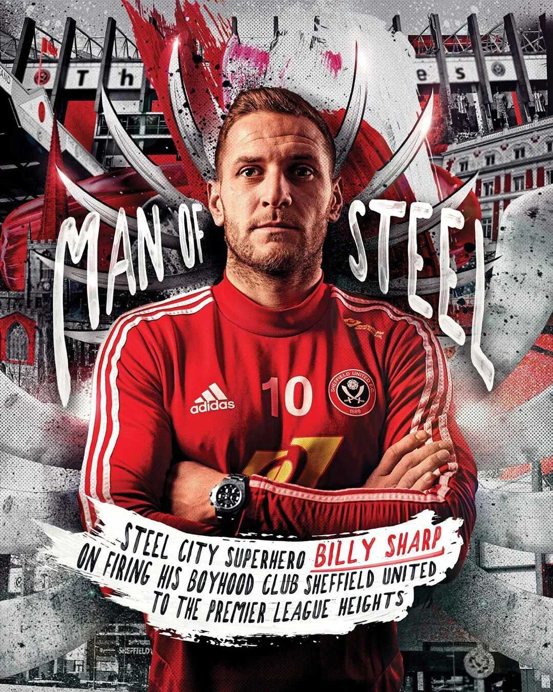 For the Spring 2020 issue of the magazine I commissioned Neil Jamieson (the_sporting_press) to create the cover. It was to feature Sheffield United striker Billy Sharp who we had exclusively interviewed and photographed at the Blades’ training ground.